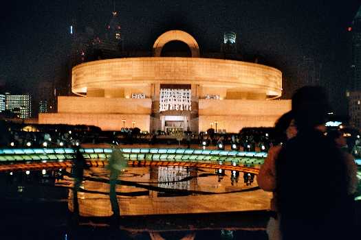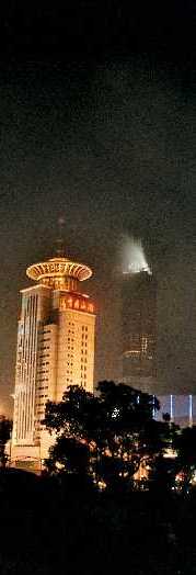 After the descend from Taishan we went to Jinan to have lunch and to catch our plane to Shanghai. Despite being a morning bird, getting up early in Tai'an and on the Taishan made me very tired. So I could not fully enjoy Shanghai. In the first evening we still had a sightseeing tour featuring the nightly skyline of Shanghai. The first highlight, also in a literal sense, was the Yantai Tower with 547m of height. The white cloud at the top must be caused by the air-conditioning.