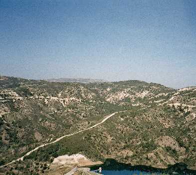 This is an outlook somewhere in the middle of Cyprus. Please note also on which kind of street we drove with which kind of bus.
