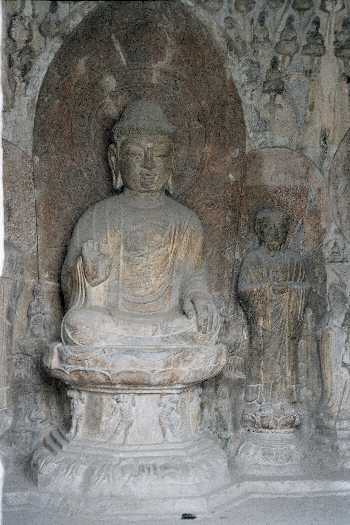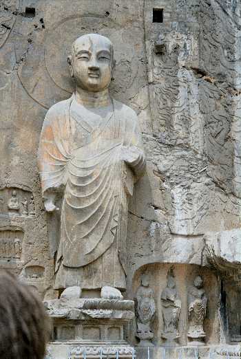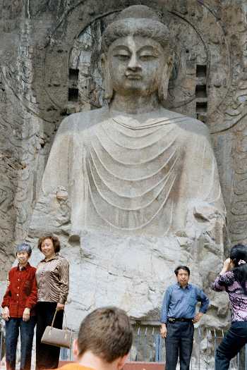 The most remarkable part of the Longmen Grottoes is the large Buddha ensemble, which was formerly hidden by a wooden shrine.