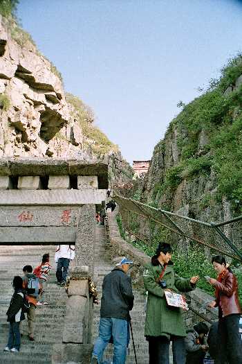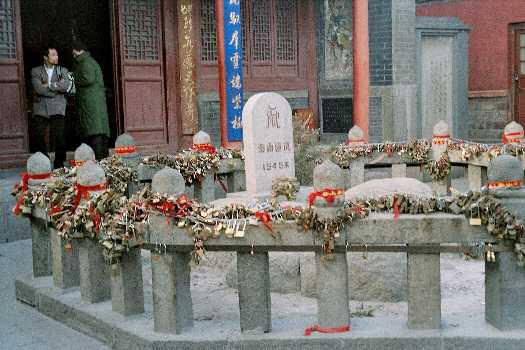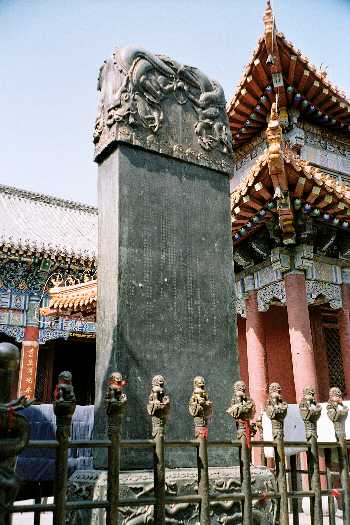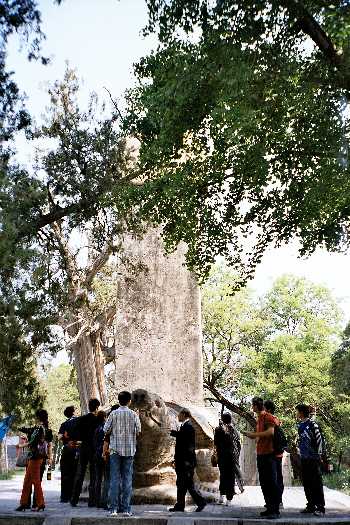 Having arrived at Tai'an at 6 a.m., we first stayed at a hotel to refresh ourselves. At 10 a.m. we went to the first Buddhist monastery, which should not be a great surprise. The inscription on the stele at the bottom left means "First Mountain", referring to Taishan as one of the most important among the Chinese holy mountains.