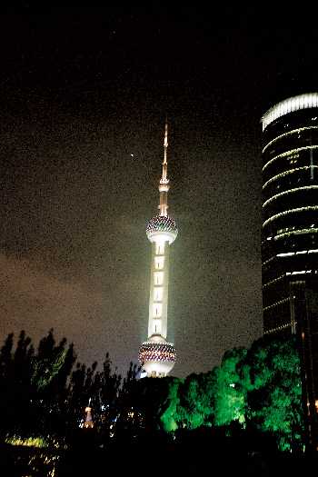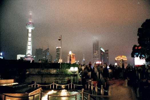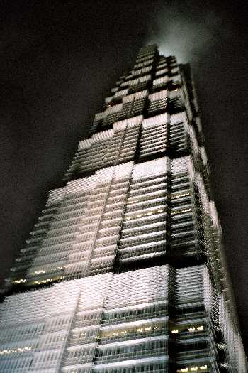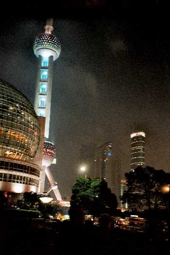 After the descend from Taishan we went to Jinan to have lunch and to catch our plane to Shanghai. Despite being a morning bird, getting up early in Tai'an and on the Taishan made me very tired. So I could not fully enjoy Shanghai. In the first evening we still had a sightseeing tour featuring the nightly skyline of Shanghai. The first highlight, also in a literal sense, was the Yantai Tower with 547m of height. The white cloud at the top must be caused by the air-conditioning.